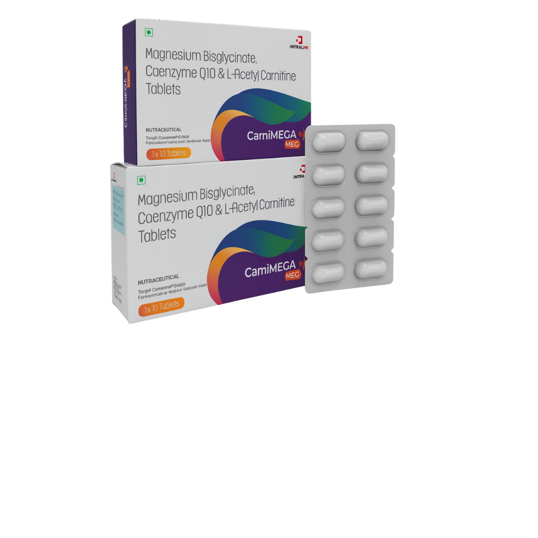 CARNIMEGA-MEG Tablet – Magnesium Bisglycinate 360 mg + Co-enzyme Q10 30 mg + L-Acetyl Carnitine 300 mg + Vitamin B12 2.4 mcg Manufacturer, Supplier & PCD Pharma Franchise India Advanced Neuro-Cardiac & Energy Support Formula by IntraLife Pvt. Ltd. Magnesium Bisglycinate 360 mg + Co-enzyme Q10 30 mg + L-Acetyl Carnitine 300 mg + Vitamin B12 2.4 mcg tablets, marketed under the brand name CARNIMEGA-MEG TAB, provide comprehensive support for nerve health, cardiac health, muscle strength, mitochondrial energy production, and neuropathy management. This powerful combination improves cellular energy metabolism, nerve regeneration, cardiovascular function, and fatigue recovery. If you are searching for: Magnesium Bisglycinate 360 mg + Co-enzyme Q10 30 mg + L-Acetyl Carnitine 300 mg + Vitamin B12 2.4 mcg manufacturer in India Magnesium Bisglycinate CoQ10 Carnitine Vitamin B12 supplier India Co-enzyme Q10 Carnitine tablets distributor India Neuro-cardiac supplement PCD pharma franchise India then CARNIMEGA-MEG TAB by IntraLife is a highly demanded product. Composition Each tablet contains: Magnesium Bisglycinate 360 mg Co-enzyme Q10 30 mg L-Acetyl Carnitine 300 mg Vitamin B12 2.4 mcg Dosage Form: Tablet Therapeutic Category: Neuropathy Care | Cardiac Support | Nutraceutical | Energy Supplement Mechanism of Action Magnesium Bisglycinate 360 mg Supports nerve transmission, muscle relaxation, and cardiovascular stability. Co-enzyme Q10 30 mg Improves mitochondrial energy production and heart muscle function. L-Acetyl Carnitine 300 mg Enhances nerve regeneration, brain function, and cellular energy metabolism. Vitamin B12 2.4 mcg Supports nerve repair, red blood cell formation, and neurological health. This combination makes Magnesium Bisglycinate + Co-enzyme Q10 + L-Acetyl Carnitine + Vitamin B12 tablets ideal for nerve and cardiac support. Indications CARNIMEGA-MEG TAB is indicated for: Peripheral neuropathy Diabetic neuropathy Cardiac health support Muscle weakness and fatigue Energy deficiency Nerve damage recovery Neurological disorders Benefits Supports nerve regeneration Improves cardiac function Boosts cellular energy production Reduces fatigue and weakness Improves muscle and nerve strength Highly prescribed nutraceutical combination Manufacturer of Magnesium Bisglycinate + CoQ10 + Carnitine + Vitamin B12 Tablets in India IntraLife Pvt. Ltd. is a trusted: Magnesium Bisglycinate manufacturer India Co-enzyme Q10 tablet manufacturer India L-Acetyl Carnitine manufacturer India Vitamin B12 tablet manufacturer India Neuropathy supplement manufacturer India Cardiac nutraceutical manufacturer India Produced in WHO-GMP certified manufacturing facilities. Supplier, Distributor & Stockist in India We appoint: Magnesium Bisglycinate CoQ10 Carnitine distributor India Neuropathy supplement stockist India Co-enzyme Q10 Carnitine wholesaler India Vitamin B12 tablet supplier India Nutraceutical distributor India Available across metro cities and district-level markets. PCD Pharma Franchise Opportunity Start PCD pharma franchise for Magnesium Bisglycinate 360 mg + Co-enzyme Q10 30 mg + L-Acetyl Carnitine 300 mg + Vitamin B12 2.4 mcg tablets. Benefits: Monopoly rights High profit margins Promotional support Fast nationwide supply 3500+ product portfolio Popular searches: Co-enzyme Q10 PCD pharma franchise India L-Carnitine tablet distributor India Neuropathy PCD pharma franchise India Magnesium Bisglycinate tablet franchise India Magnesium Bisglycinate 360 mg manufacturer India, Co-enzyme Q10 30 mg supplier India, L-Acetyl Carnitine 300 mg distributor India, Vitamin B12 tablet manufacturer India, neuropathy supplement manufacturer India, CoQ10 Carnitine tablet supplier India, nutraceutical manufacturer India, PCD pharma franchise neuropathy tablets India, cardiac supplement manufacturer India. Magnesium Bisglycinate 360 mg + Co-enzyme Q10 30 mg + L-Acetyl Carnitine 300 mg + Vitamin B12 2.4 mcg manufacturer in Mumbai Maharashtra, Magnesium Bisglycinate 360 mg + Co-enzyme Q10 30 mg + L-Acetyl Carnitine 300 mg + Vitamin B12 2.4 mcg supplier in Mumbai Maharashtra, distributor in Mumbai Maharashtra, stockist in Mumbai Maharashtra, PCD pharma franchise in Mumbai Maharashtra, Magnesium Bisglycinate 360 mg + Co-enzyme Q10 30 mg + L-Acetyl Carnitine 300 mg + Vitamin B12 2.4 mcg manufacturer in Pune Maharashtra, supplier in Pune Maharashtra, distributor in Pune Maharashtra, stockist in Pune Maharashtra, PCD pharma franchise in Pune Maharashtra, Magnesium Bisglycinate 360 mg + Co-enzyme Q10 30 mg + L-Acetyl Carnitine 300 mg + Vitamin B12 2.4 mcg manufacturer in Delhi, supplier in Delhi, distributor in Delhi, stockist in Delhi, PCD pharma franchise in Delhi, Magnesium Bisglycinate 360 mg + Co-enzyme Q10 30 mg + L-Acetyl Carnitine 300 mg + Vitamin B12 2.4 mcg manufacturer in Bengaluru Karnataka, supplier in Bengaluru Karnataka, distributor in Bengaluru Karnataka, stockist in Bengaluru Karnataka, PCD pharma franchise in Bengaluru Karnataka, Magnesium Bisglycinate 360 mg + Co-enzyme Q10 30 mg + L-Acetyl Carnitine 300 mg + Vitamin B12 2.4 mcg manufacturer in Chennai Tamil Nadu, supplier in Chennai Tamil Nadu, distributor in Chennai Tamil Nadu, stockist in Chennai Tamil Nadu, PCD pharma franchise in Chennai Tamil Nadu, Magnesium Bisglycinate 360 mg + Co-enzyme Q10 30 mg + L-Acetyl Carnitine 300 mg + Vitamin B12 2.4 mcg manufacturer in Hyderabad Telangana, supplier in Hyderabad Telangana, distributor in Hyderabad Telangana, stockist in Hyderabad Telangana, PCD pharma franchise in Hyderabad Telangana, Magnesium Bisglycinate 360 mg + Co-enzyme Q10 30 mg + L-Acetyl Carnitine 300 mg + Vitamin B12 2.4 mcg manufacturer in Ahmedabad Gujarat, supplier in Ahmedabad Gujarat, distributor in Ahmedabad Gujarat, stockist in Ahmedabad Gujarat, PCD pharma franchise in Ahmedabad Gujarat, Magnesium Bisglycinate 360 mg + Co-enzyme Q10 30 mg + L-Acetyl Carnitine 300 mg + Vitamin B12 2.4 mcg manufacturer in Kolkata West Bengal, supplier in Kolkata