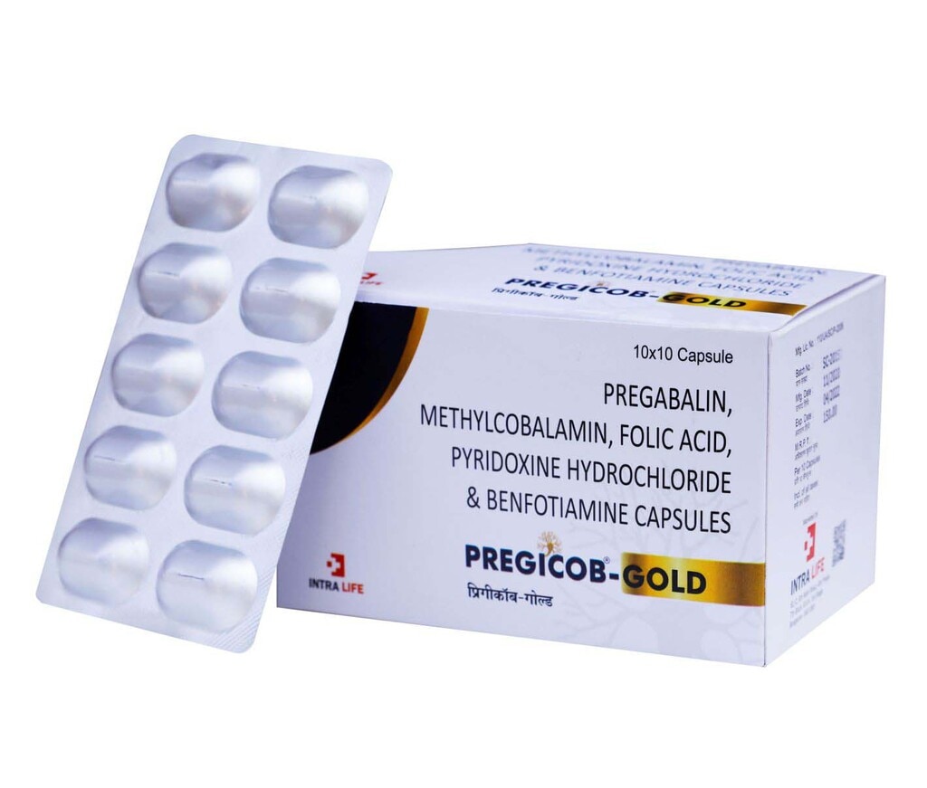 Benfotiamine 7.5 mg + Folic Acid 0.75 mg + Methylcobalamin 750 mcg + Pregabalin 75 mg + Vitamin B6 (Pyridoxine) 1.5 mg is a comprehensive neurotropic formulation designed for the effective management of neuropathic pain and peripheral neuropathy. This combination works synergistically to relieve nerve pain, repair damaged nerves, and improve overall nerve function. Pregabalin helps reduce neuropathic pain by modulating calcium channel activity in nerve cells. Methylcobalamin supports nerve regeneration and myelin sheath repair. Benfotiamine protects nerves from oxidative stress and glucose-induced damage. Folic acid aids in nerve cell repair and red blood cell formation. Pyridoxine supports neurotransmitter synthesis and nerve health. This formulation is commonly prescribed for diabetic neuropathy, peripheral neuropathy, post-herpetic neuralgia, sciatica, and other nerve-related disorders.